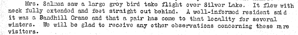 Sandhill Cranes Once Wintered at Silver Lake From May 1936: Share this: Share on X (Opens in new window) X Share on Facebook (Opens in new window) Facebook Like Loading... Related
